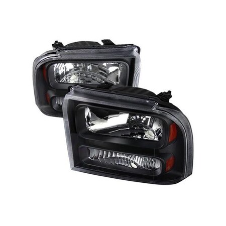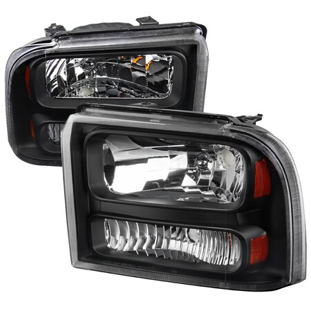 Spec-D Crystal Headlights w/ Amber Reflectors (Matte Black Housing/Clear Lens) Ford F-Series | Excursion 2005-2007 | 2LH-F25005JM-ABM