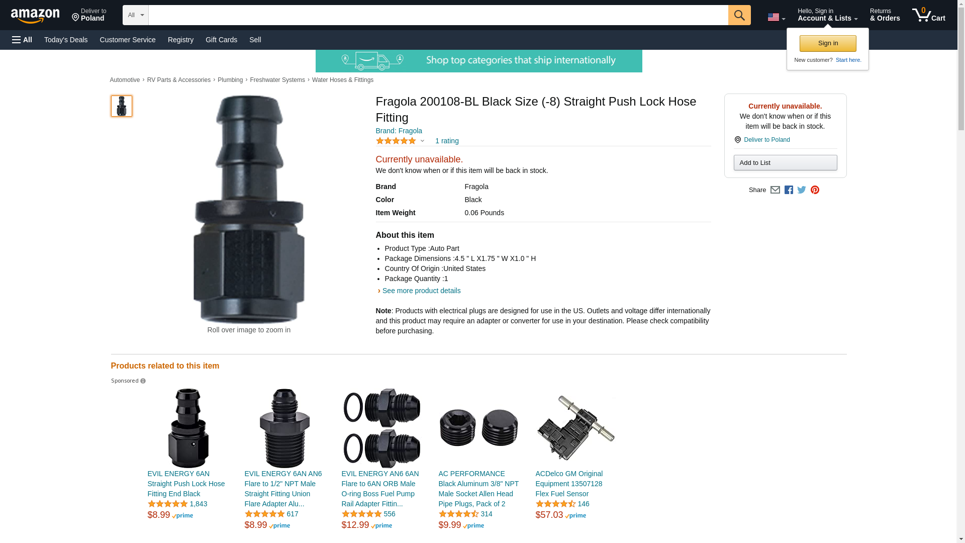 Fragola 200108-BL Push-Lock Straight -08 AN Race Hose End Fitting, Black