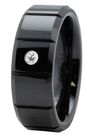 EWC R40076-120 Beveled Black Ceramic Ring with CZ - Size 12