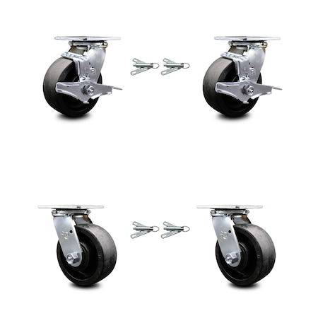 Glass Filled Nylon Swvl Caster w/Main. Free Bearings Set 4 w/5" x 2" Black Wheel-Includes 2 Swvl with Brakes and Bolt on Swvl Lcks&2 Swvl with Bolt on Swvl Lcks-5000lbs Total Cpty-Service Caster Brand