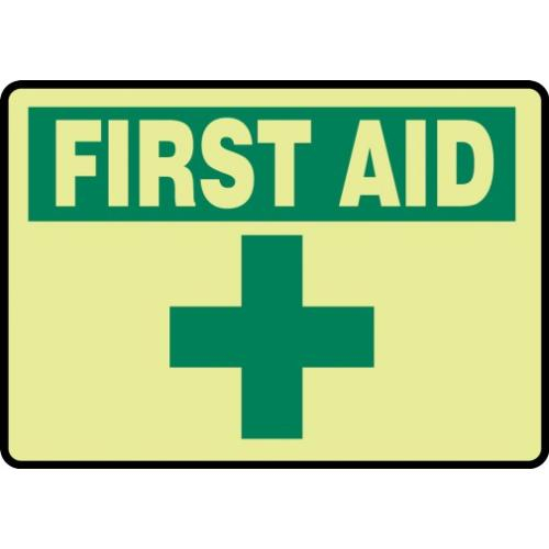 Accuform 7" x 10" First Aid Sign "Glow" MLFS501GP. ✅Accuform authorized distributor ✅. ☎ (800) 884-5767 Mon-Fri 8:00 AM - 5:00 PM ET or order online 24/7