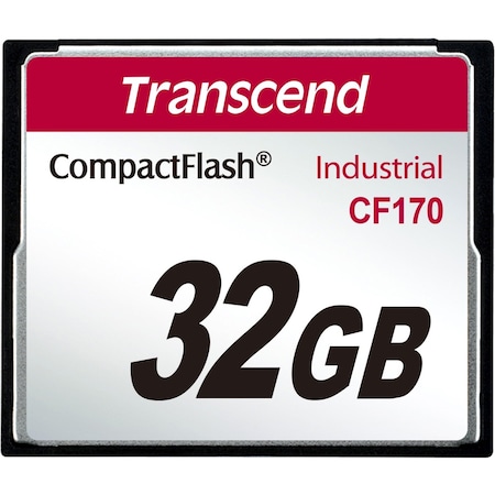 <BR>DESCRIPTION </BR>Transcend's CF170 CompactFlash card complies with CompactFlash v4.1 specification and uses error-correction code (ECC) error correction which can fix up to 24 bits of errors per kilobytes. The CF170 memory card achieves a long service life and long stability. It also features an integrated static global Wear Leveling feature for enhanced protection against unresolvable errors and supports S. M.A. R. T and Security Command.The CF170 board has an extended temperature range from -25°C to 85°C. Supports Ultra DMA 5 mode and three operating modes: PCMCIA (PC Card Memory), PC Card IO and True IDE. The CF170 card works as a hard disk when used in True IDE mode. It is the ideal product for industrial applications. <BR><BR>TECHNICAL SPECIFICATIONS </BR>Storage capacity: 32 GB <br>Product type: CF card <br>Transfer rate (read): 90 MB/s <br>Transfer rate (write): 61 MB/s <BR>32 GB memory