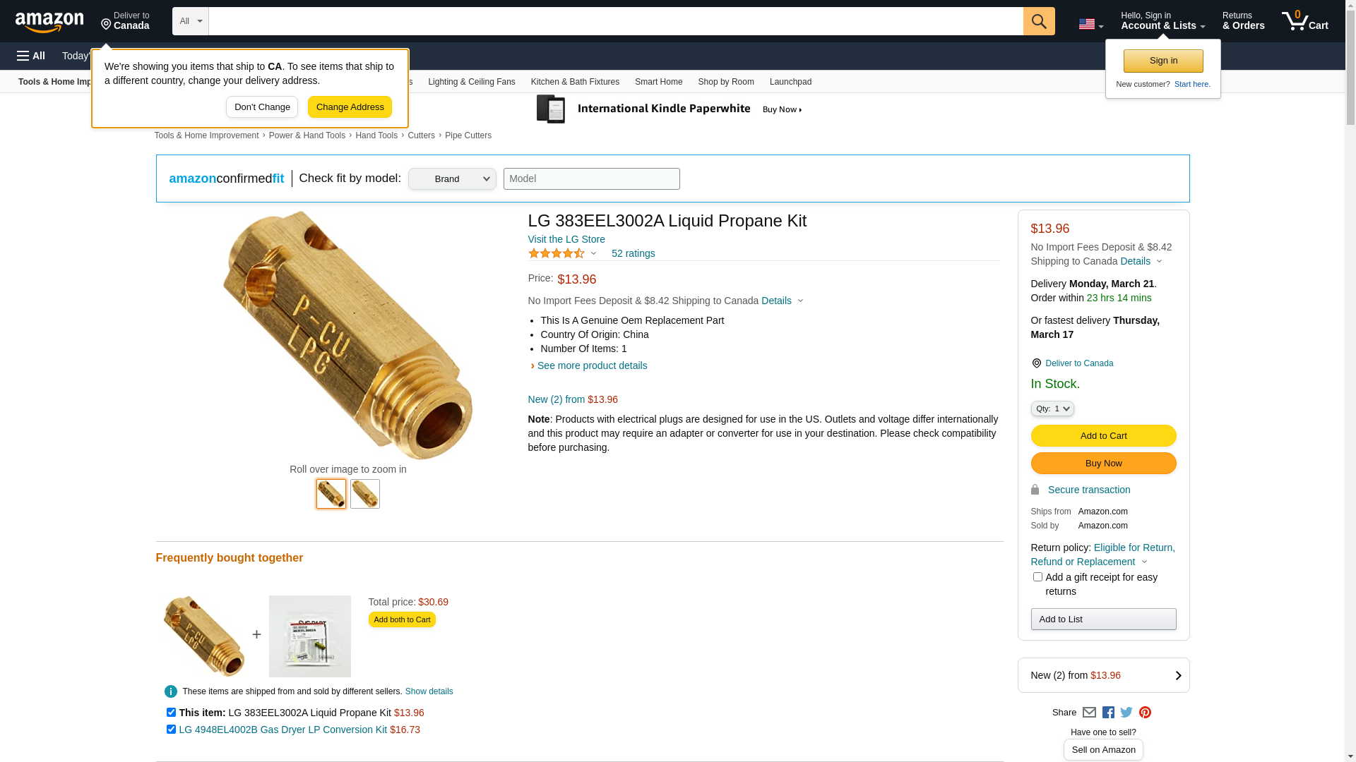 LG Electronics 383EEL3002A Dryer Gas Converter, Na