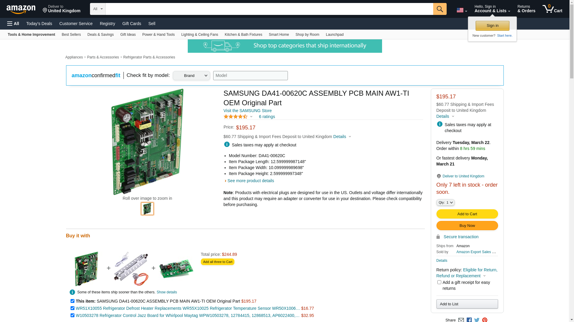 ![]() tvserviceparts.com | DA41-00620C | 1 | 1 | 1 @ $207.53 | |