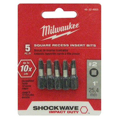 Milwaukee 48-32-4605 #2 Square Recess Shockwave 1" Insert Bit 5-Pack