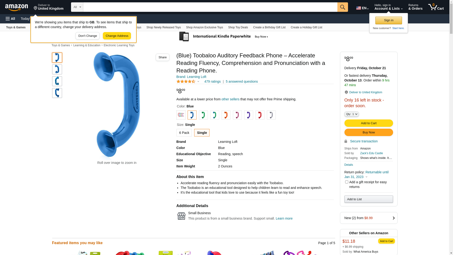 Blue Toobaloo Auditory Feedback Phone - Accelerate Reading Fluency, Comprehension and Pronunciation with a Reading Phone.