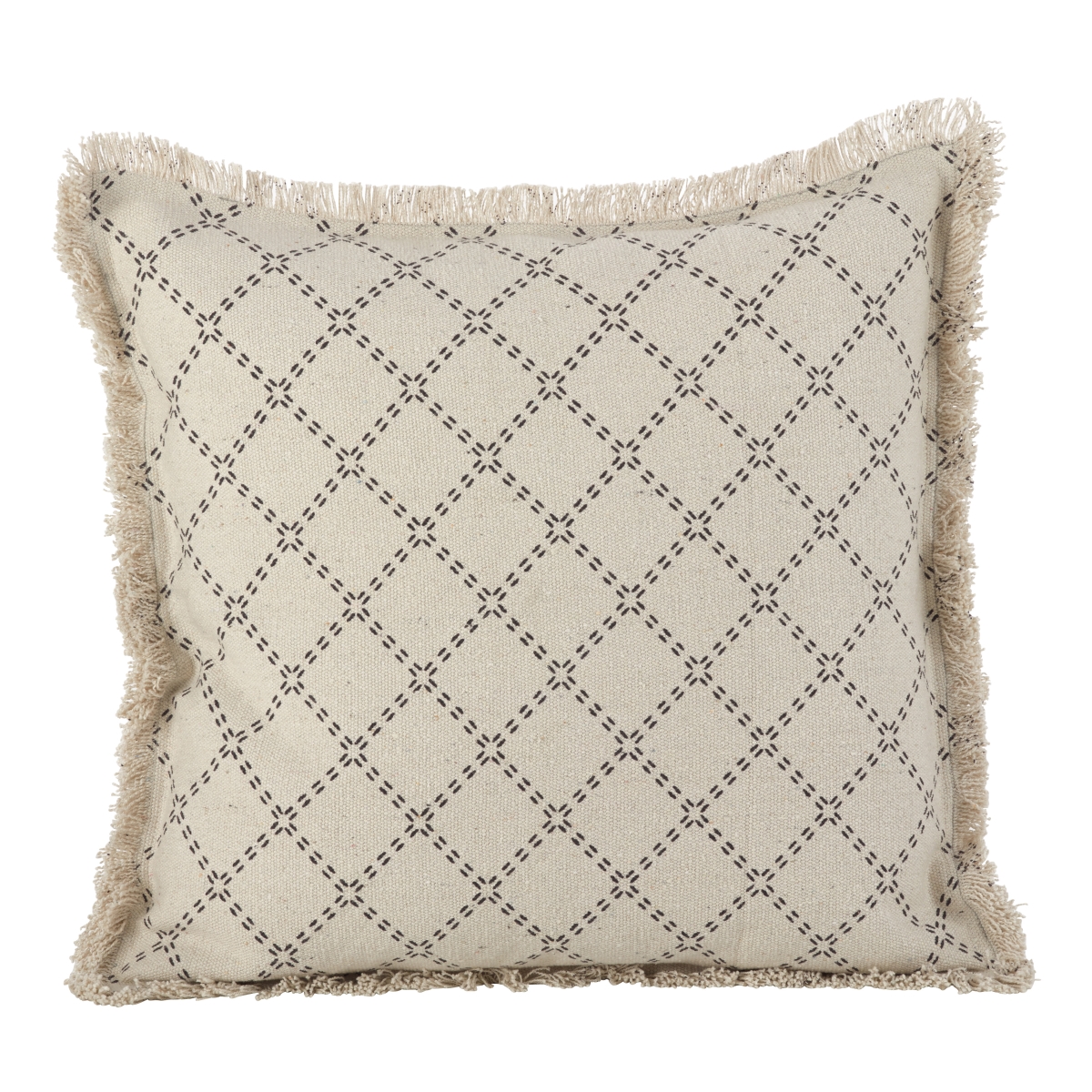 SARO 2147.N20S Diamond Design Fringe Trim Cotton Down Filled Throw Pillow - Natural