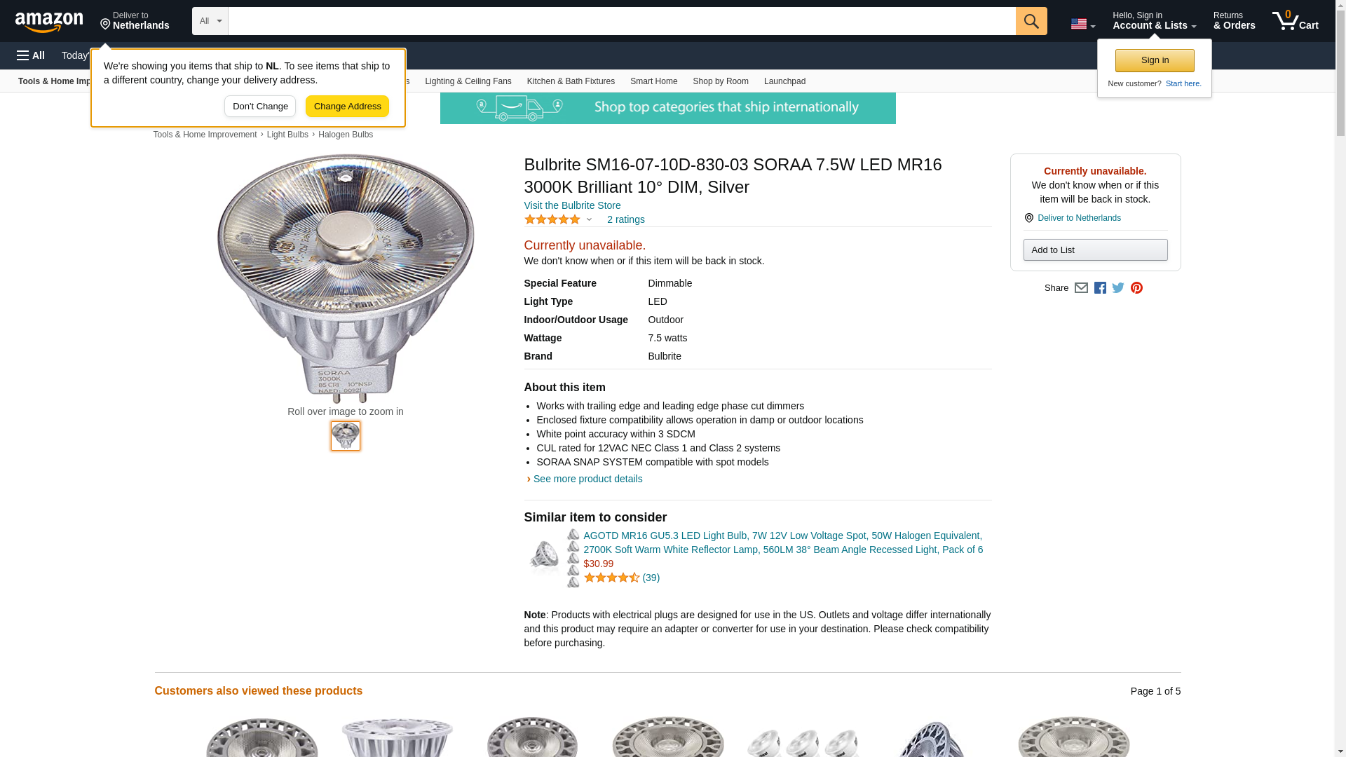 Soraa SM16-07-10D-830-03 MR16 LED Bulb, GU5.3 Base, 12V 7.5W, 10 Deg. ? Improve Depot, LLC