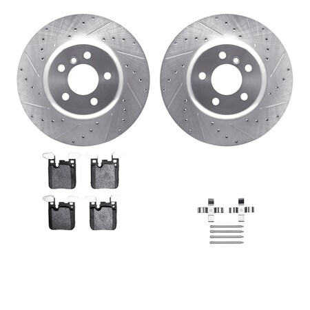 Dynamic Friction Company Rear Brake Rotors-Drilled and Slotted-Silver with 3000 Series Ceramic Brake Pads includes Hardware 7312-31119