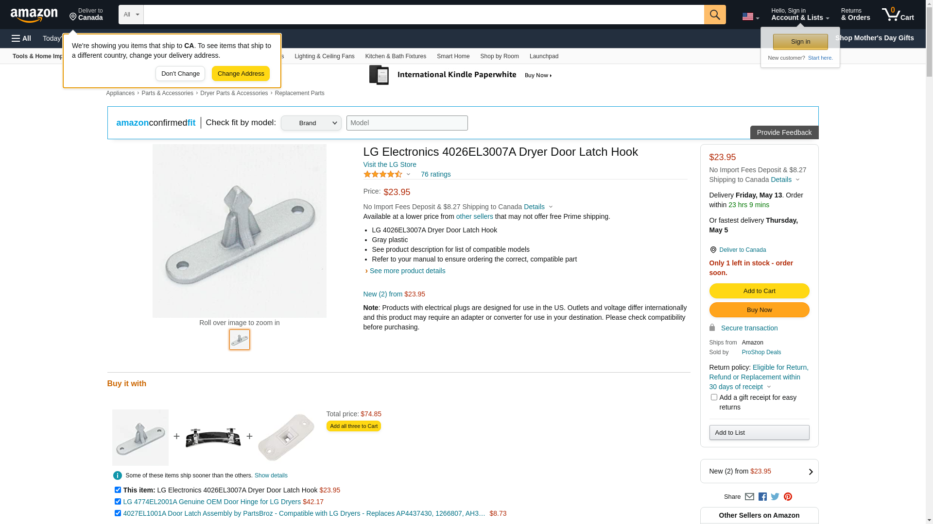 ![]() midwestapplianceparts.com | 4026EL3007A-L-G-P | 1 | -2 | 1 | 1 @ $23.04 |
