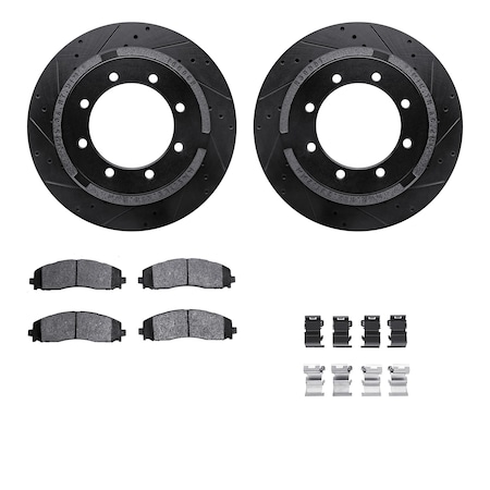 - Brake Kit includes (2) Dynamic Friction Company Brake Rotors Drilled and Slotted Black with (4) DFC Heavy Duty Brake Pads includes Hardware