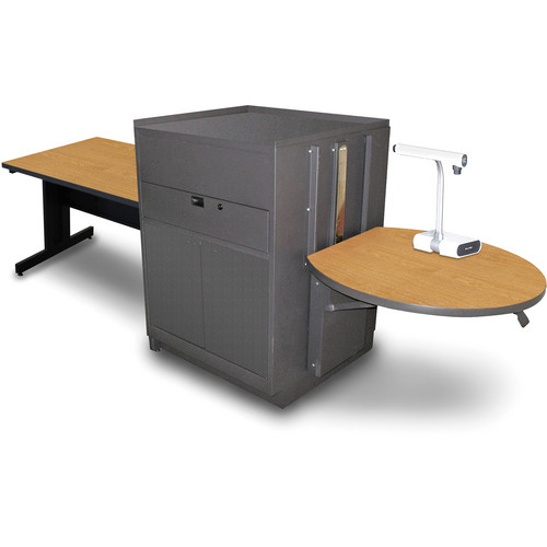 MVMTRM4830OKDT Finish: Oak Features: -Vizion collection. -Steel and high pressure laminate construction make this desk great value. -Media center with desk. -Storage cabinet for CPU. -Lockable front drawer lockable steel doors. -Rack or component capable. Style: -Modern. Primary Material: -Metal. Powered: -Yes. Storage Included: -Yes. Clock Included: -Yes. Reading Light Included: -Yes. Wireless: -Yes. Sound System Included: -Yes. Country of Manufacture: -United States. Dimensions: -Adjustable platform size: 26" - 42". Overall Height - Top to Bottom: -47". Adjustable Height: -Yes. Overall Width - Side to Side: -78". Overall Depth - Front to Back: -36". Overall Product Weight: -224 lbs.