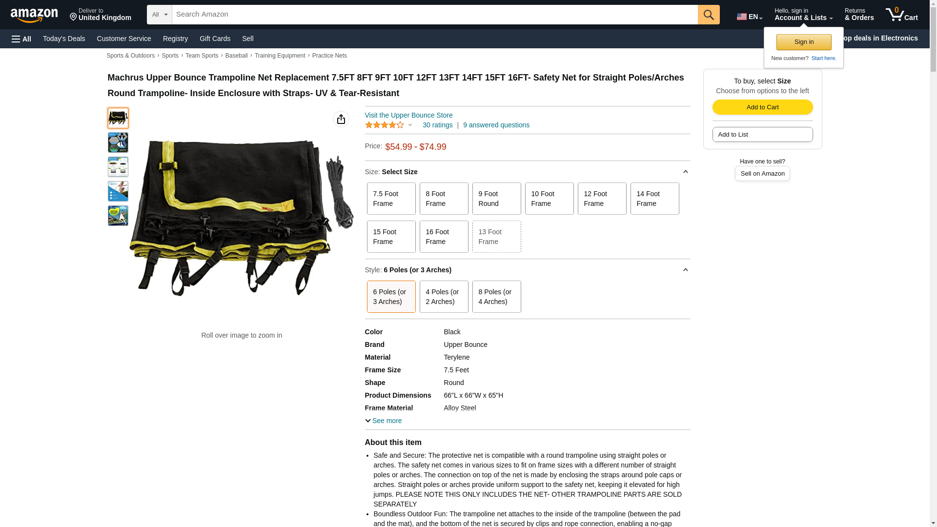 - Safe and Secure: The protective net is compatible with a round trampoline using straight poles or arches. The safety net comes in various sizes to fit on frame sizes with a different number of straight poles or arches. The connection on top of the net is made by enclosing the straps around pole caps or arches. Straight poles or arches provide uniform support to the safety net, keeping it elevated for high jumps. PLEASE NOTE THIS ONLY INCLUDES THE NET- OTHER TRAMPOLINE PARTS ARE SOLD SEPARATELY