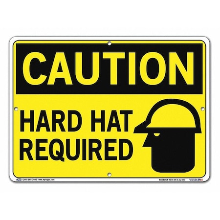 Vestil SI-C-04-C-AL-040 HARD HAT REQUIRED Caution Sign, Aluminum, 0.040" Overall Size, 14.5" W x 10.5" H