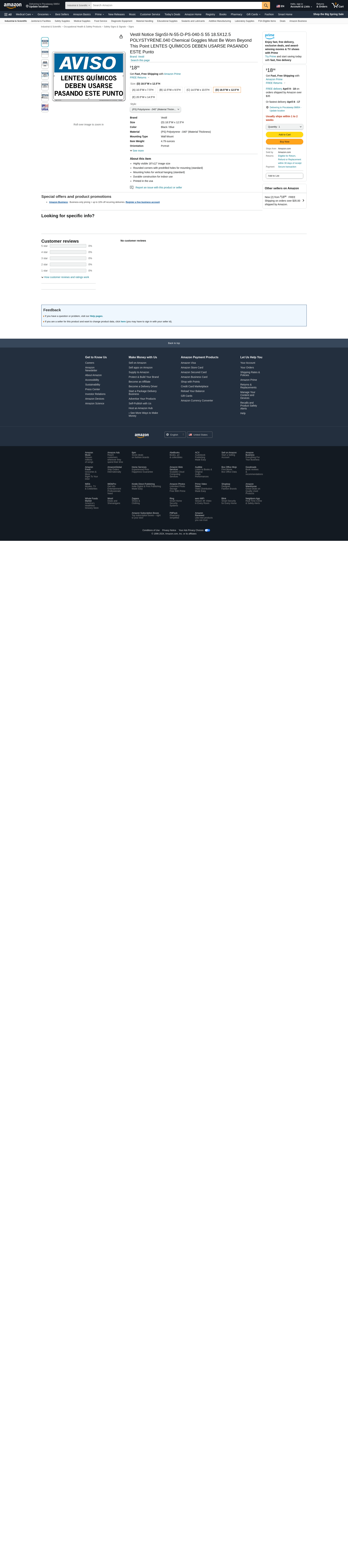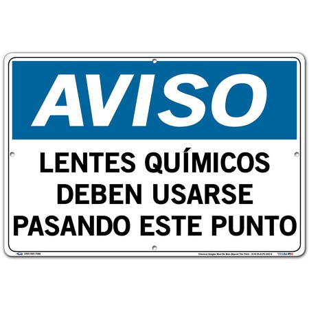 Vestil Notice SignSI-N-55-D-PS-040-S 55 18.5X12.5 POLYSTYRENE.040 Chemical Goggles Must Be Worn Beyond This Point LENTES QUÍMICOS DEBEN USARSE PASANDO ESTE Punto