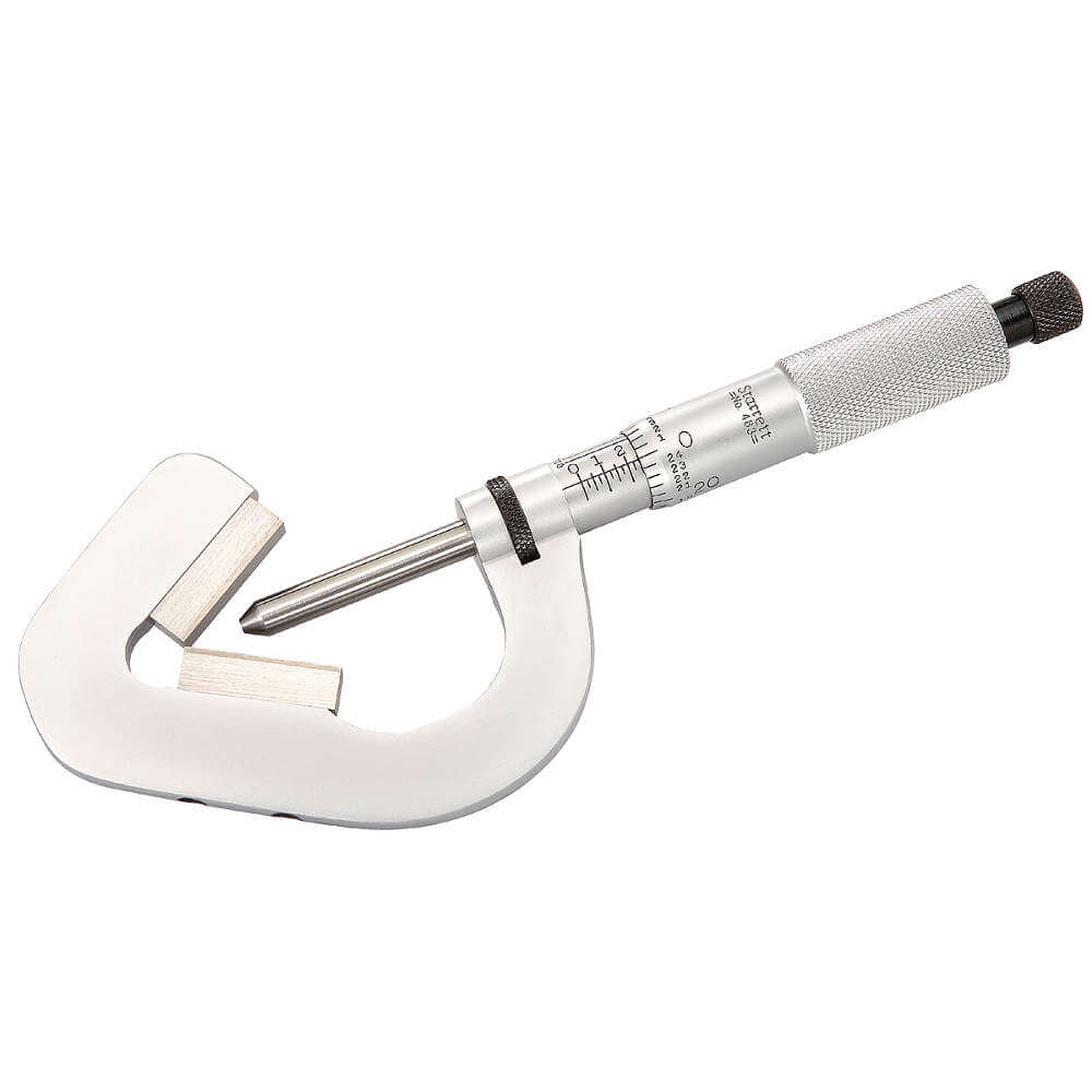 Starrett T483XRL-1 V-Anvil Micrometer, Ratchet Stop, Lock Nut, Carbide Faces, 0.093-1" Range, 0.0001" Graduation, Measures 3 Flutes, Tapered Spindle