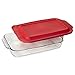 Pyrex Basics 3 Quart Glass Oblong Baking Dish with Red Plastic Lid -13.2 INCH x 8.9inch x 2 inch