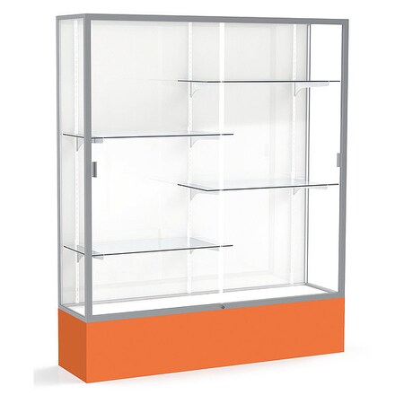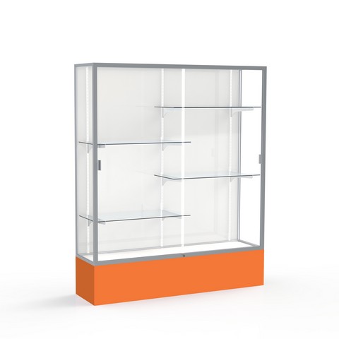 Waddell Spirit White Back Display Case, 60W by 72H by 16" D, Satin Finish with Orange Base