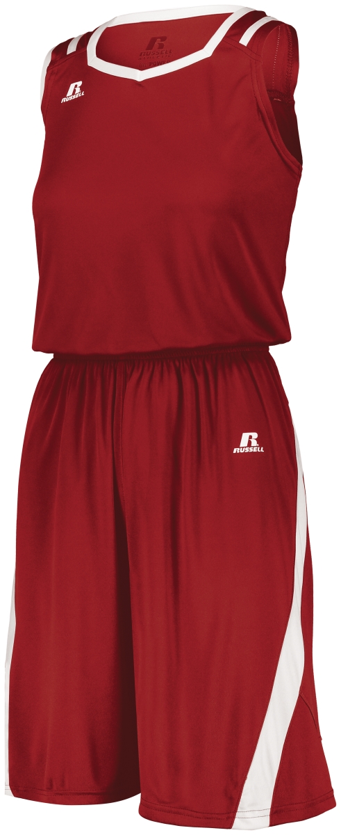 Russell 3B2X2X.TRW.XL Ladies Athletic Cut Shorts, True Red & White - Extra Large