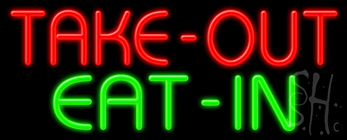 The Sign Store N102-0677 Take Out Eat in Neon Sign, Red & Green - 13 x 32 x 3 in.