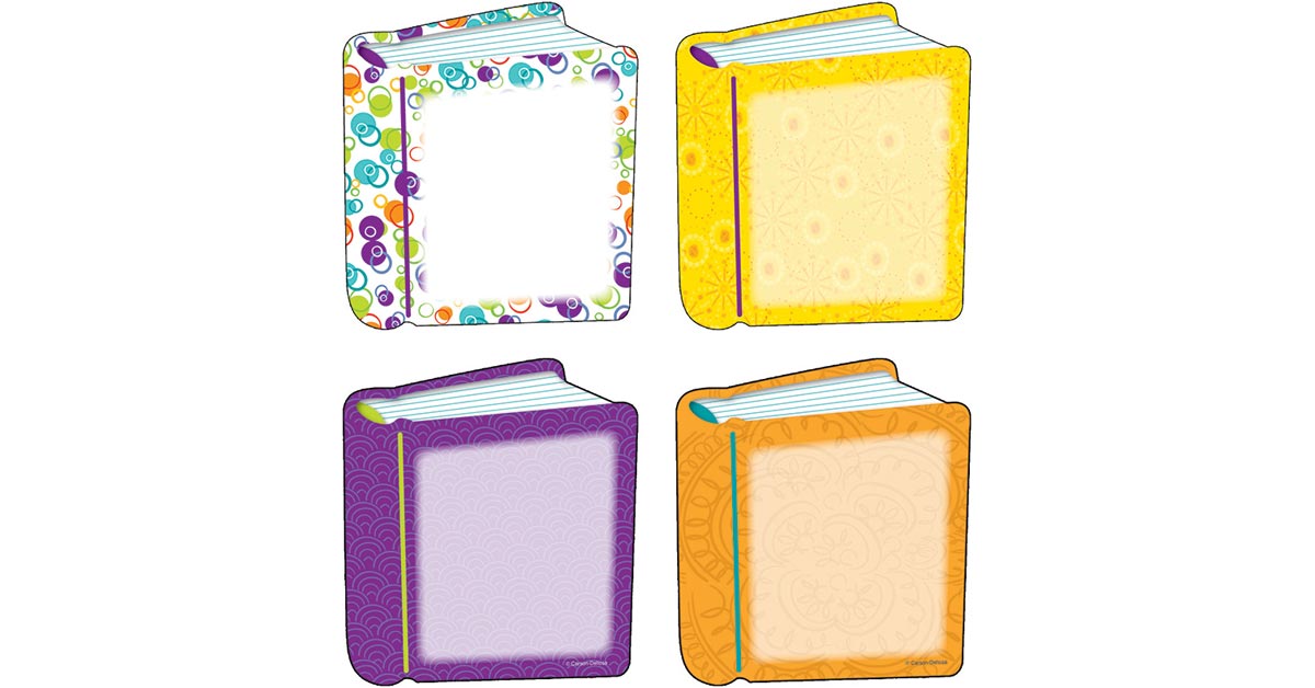 - What’s Included: This colorful décor pack includes 36 vibrant bulletin board cutouts of books in 12 different designs (3 of each). Create a book board, use as library decor, or during language arts, phonics, and reading comprehension lessons.