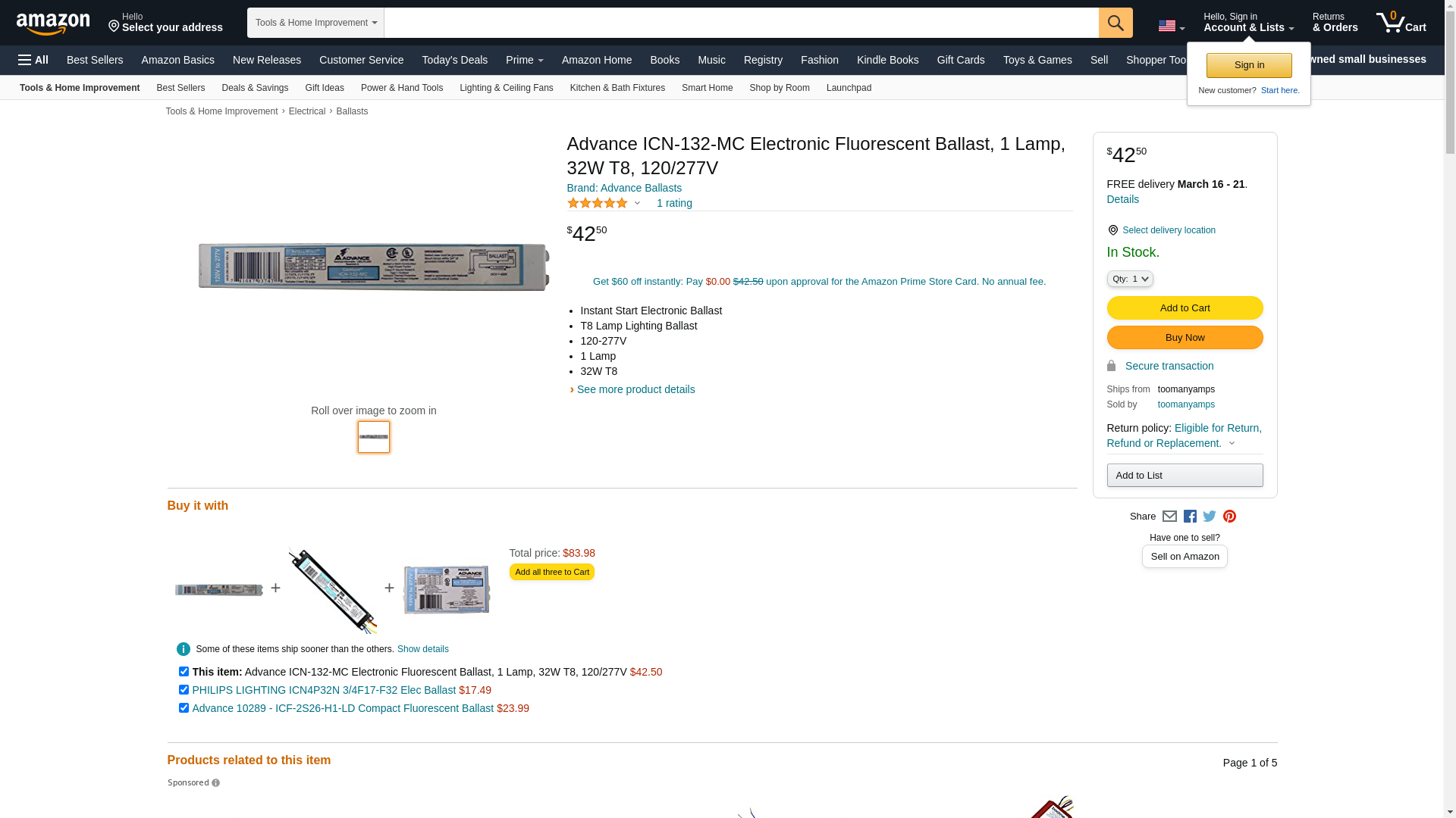 Advance ICN-132-MC Electronic Fluorescent Ballast, 1 Lamp, 32W T8, 120/277V