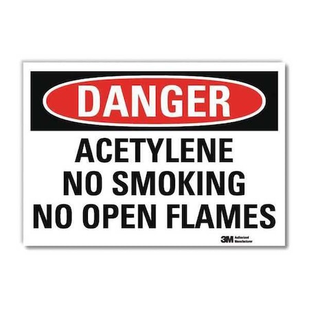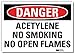 Danger Sign, Vertical Rectangle, Number of Printed Sides 1, English, Sign Format Traditional OSHA, Sign Legend Acetylene No Smoking No Open Flames, Sign Legend Background Color White, Sign Legend Style Text