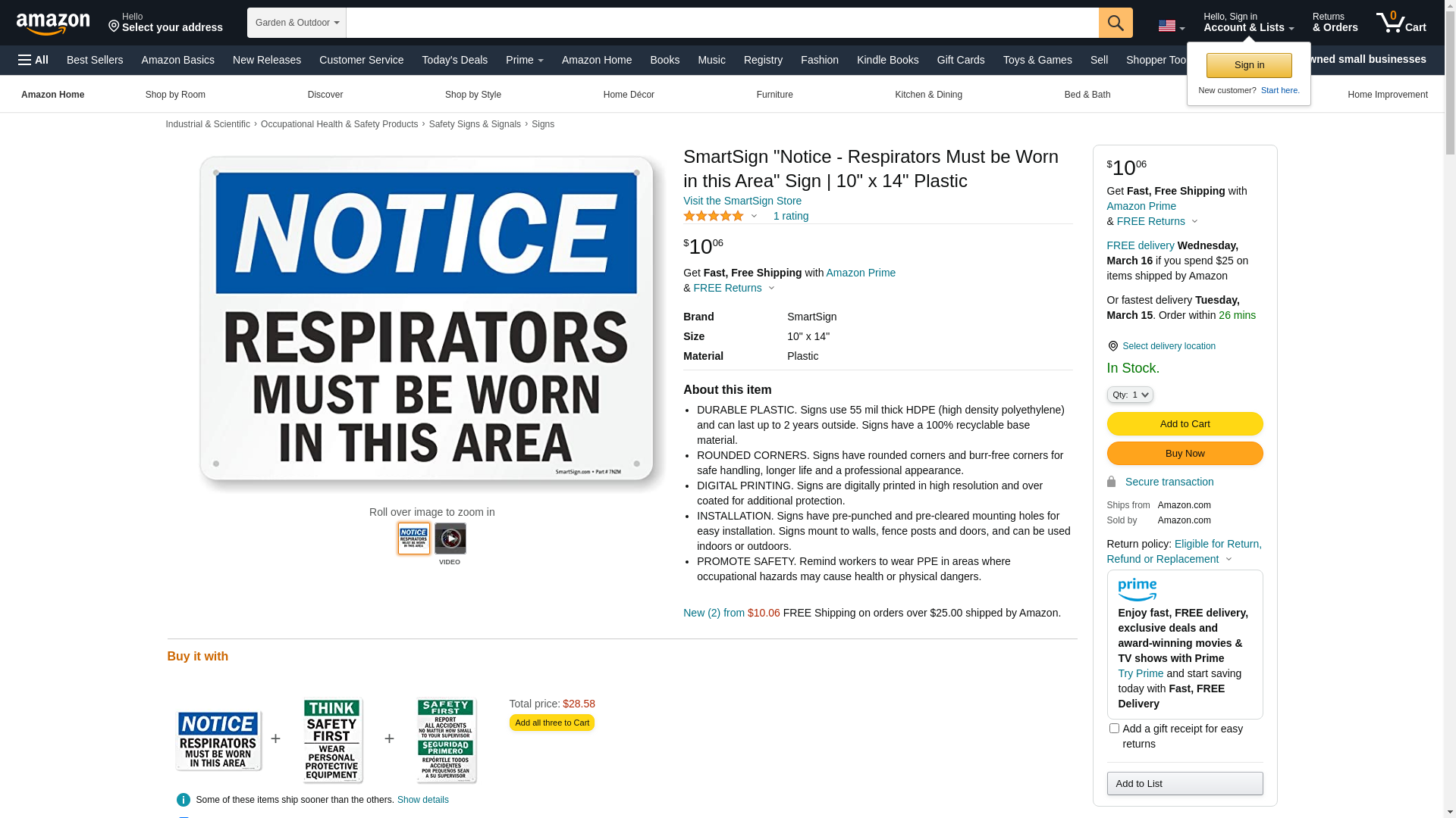 SmartSign "Notice: Respirators Must be Worn in this Area", Plastic Sign, 10" x 14". 55 mil thick, made of polyethylen...