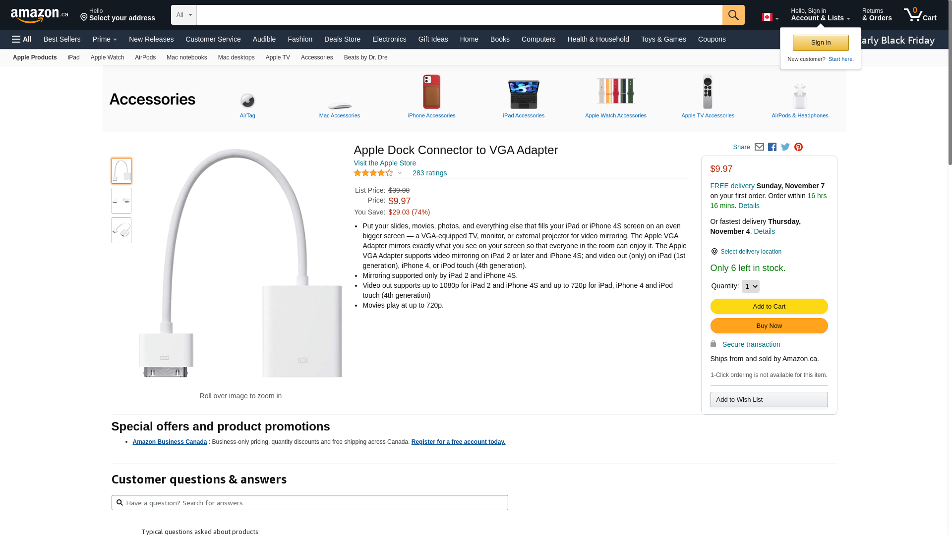 | Feature | Compatible with Apple iPadConnects your iPad to most TVs, monitors, projectors and LCD displays. |