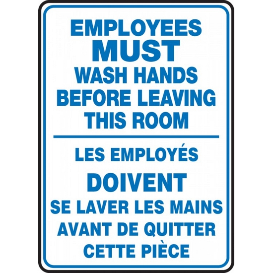 EMPLOYEES MUST WASH HANDS BEFORE LEAVING THIS ROOM (BILINGUAL FRENCH)