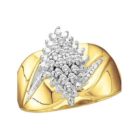 10kt Yellow Gold Womens Round Prong-set Diamond Oval Cluster Ring 1/8 Cttw. †Combined diamond weight of 1/8 carats total weight represents a range of 0.12 - 0.14 cts. t.w.