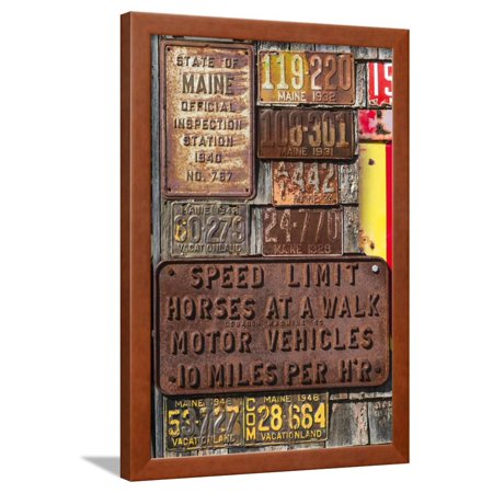 <ul> <li>Title: USA, Maine, Wells, antique license plates</li> <li>Artist: Walter Bibikow</li> <li>Paper Type: Photographic Print</li> <li>Product Type: Framed Art Print</li> <li>Framed in SOHO Pecan</li> <li>Arrives ready-to-hang for fast, simple installation</li> <li>Framed Size: 18x26 in.</li> <li>Handcrafted in the USA</li> </ul>