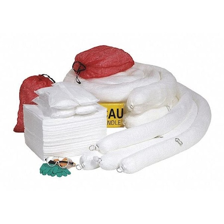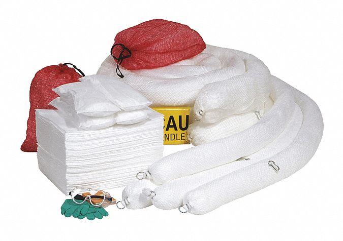 - Includes a variety of sorbents to handle spills of oil and other petroleum-based fluids while shedding water
