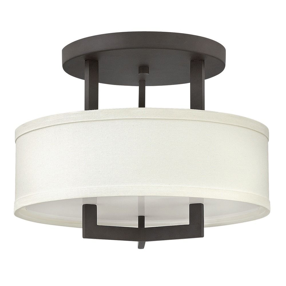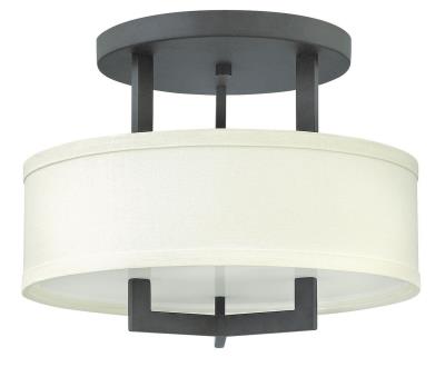 Hinkley 3200AN-LED Hampton Semi-Flush Mount Ceiling Light with Antique Nickel Finish and Off-White Linen Shade