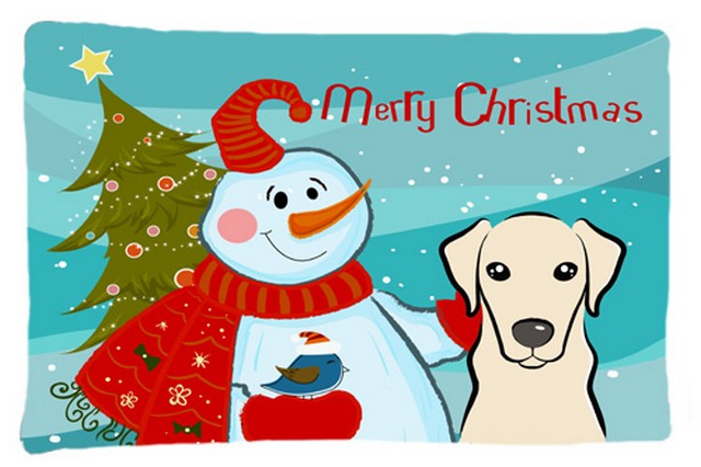 Caroline's Treasures BB1842PILLOWCASE Snowman with Yellow Labrador Fabric Standard Pillowcase, Standard, Multicolor