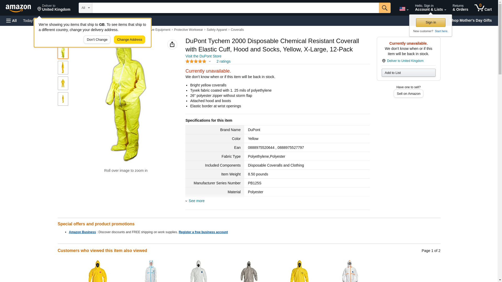 DuPont Tychem 2000 Disposable Chemical Resistant Coverall with Elastic Cuff, Hood and Socks, Yellow, X-Large, 12-Pack