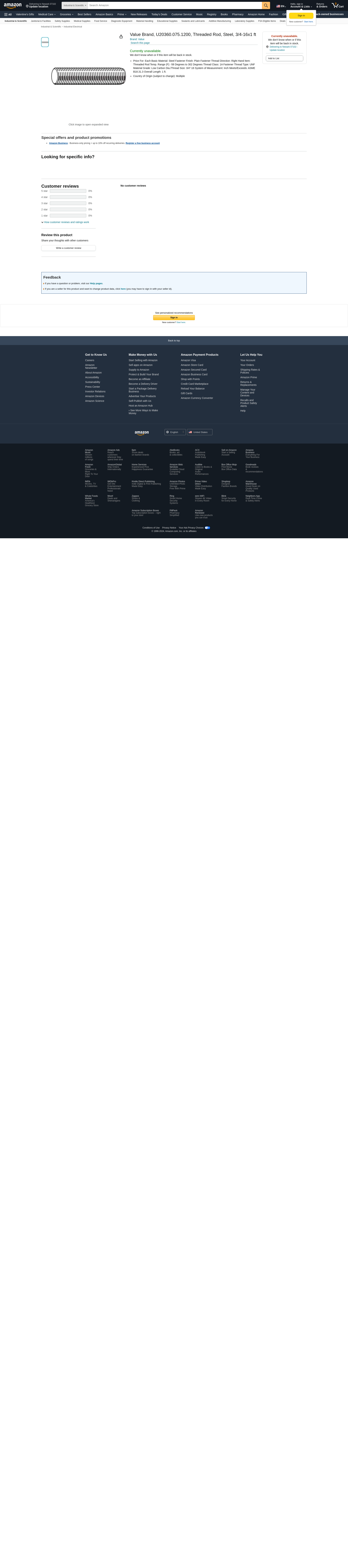 Value Brand, U20360.075.1200, Threaded Rod, Steel, 3/4-16x1 ft
