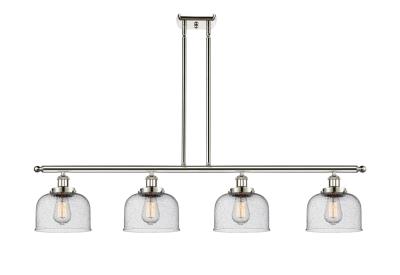 INNOVATIONS LIGHTING 916-4I-PN-G74 BALLSTON LARGE BELL 4 LIGHT 48 INCH SEEDY GLASS ISLAND LIGHT, POLISHED NICKEL,...