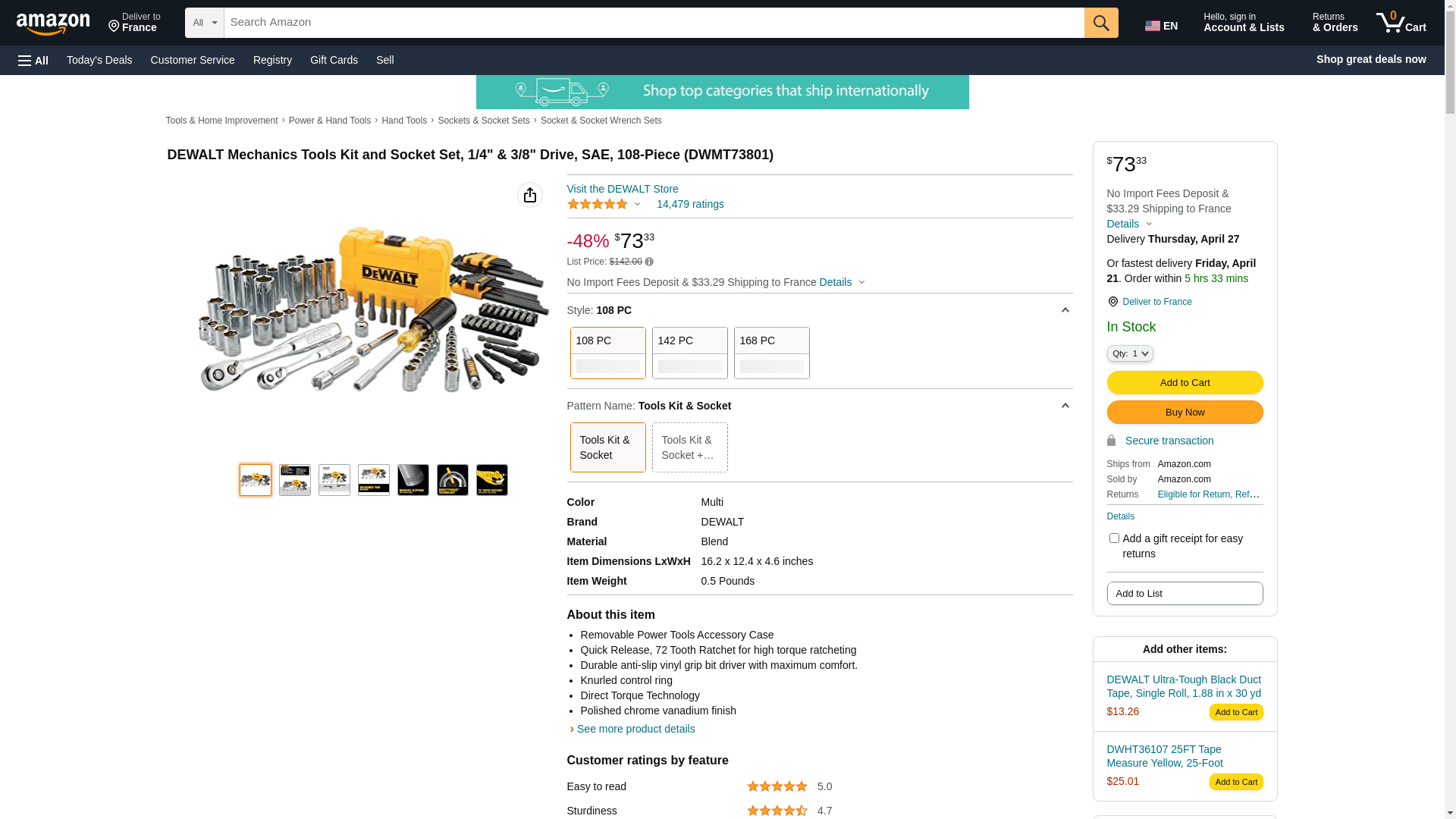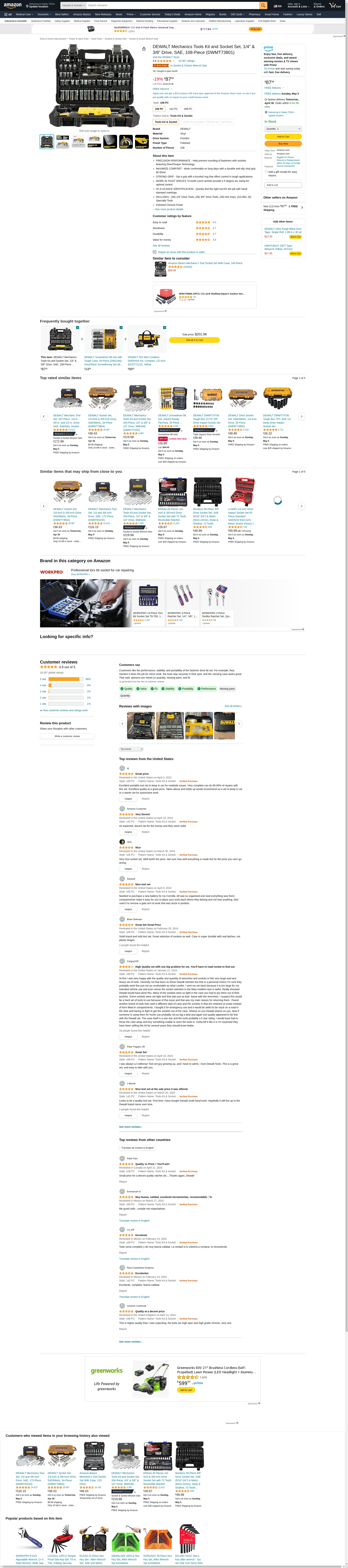 DEWALT Mechanics Tools Kit and Socket Set, 1/4" & 3/8" Drive, SAE, 108-Piece (DWMT73801)