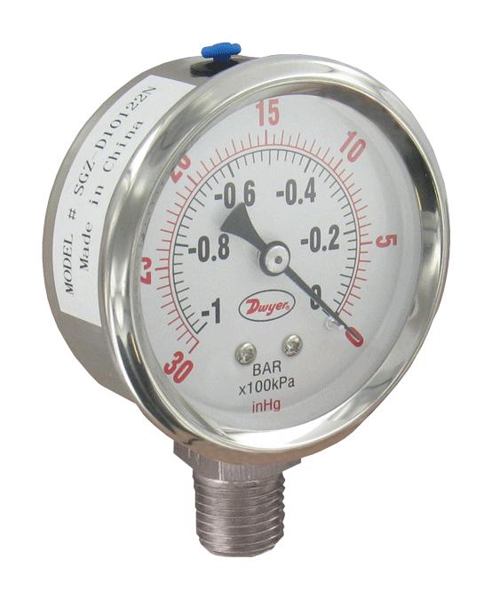 Dwyer 2.5" SS Industrial Pressure Gage, SGZ-D10322N-GF, Bottom Connect, 0-30 psi, Glycerin Filled