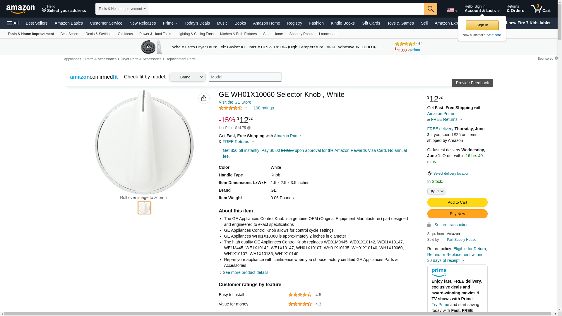 | searspartsdirect.com | WH01X10060 | 1 | 1 | ||