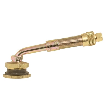 | Feature | Price For: Each Includes: Spud Diameter: 1/2" Standards: TR J650 Item: Swivel Valve Operating Temp. Range: -40 Degrees to 250 Degrees F Range: 0 to 200 psi For Use With: Truck Tires Thread Size: 31/64-26 Length: 3-1/8" Material: Brass Features: 80 Degrees Angle, Automatically Lock Max. Air Pressure: 200 psi Color: Gold Valve Size: Large Bore |
