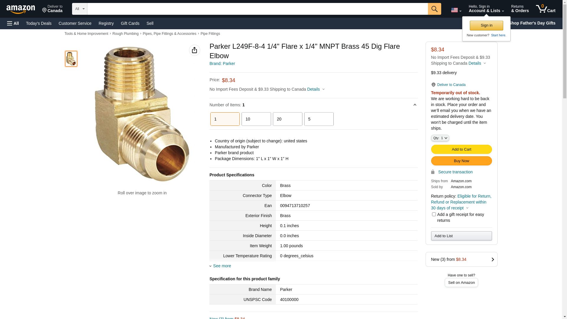 Parker L249F-8-4 1/4" Flare x 1/4" MNPT Brass 45 Dig Flare Elbow