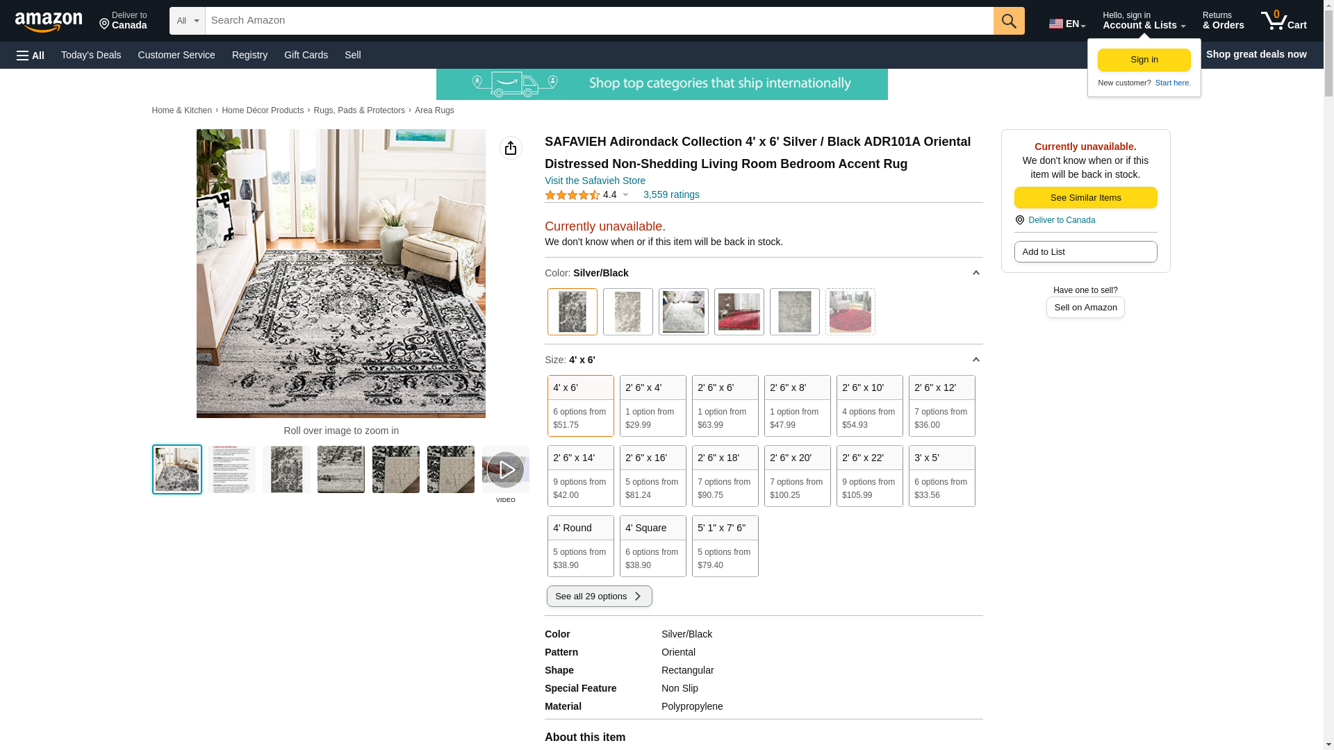 Safavieh ADR101A-4 4 x 6 ft. Small Rectangle Casual Adirondack, Silver and Black Power Loomed Rug