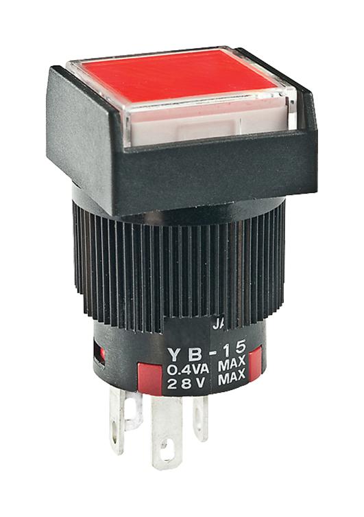 NKK Switches - YB15SKG01-5C-JC - Switch,P/B,SPDT,ON-(ON),SQ,2V Bright Red LED,Clear/Red Cap,0.4A,28VAC/DC,.110 QC - Allied Electronics & Automation, part of RS Group