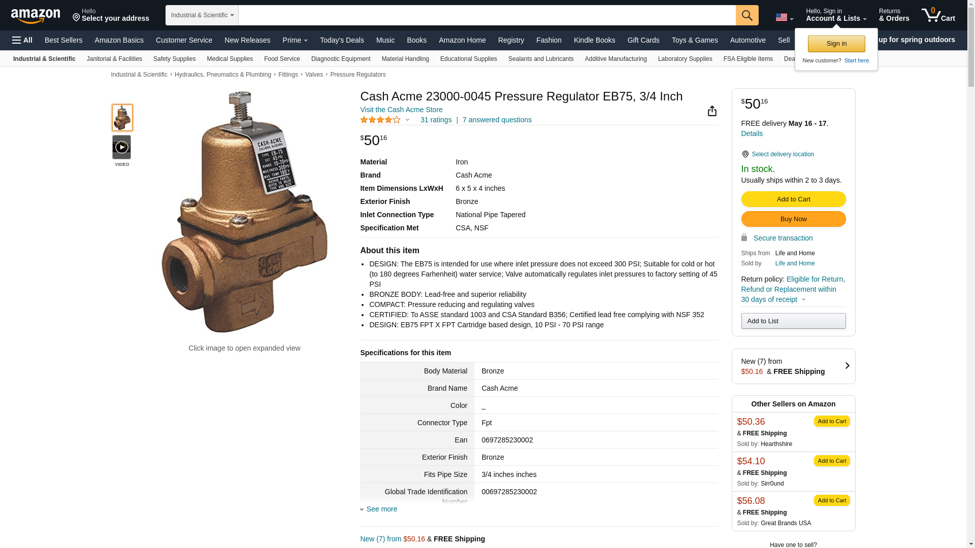 | Feature | The Cash Acme EB75 is a compact, iron-body pressure regulating valve designed for installations where local codes allow the use of iron body regulators for water service |