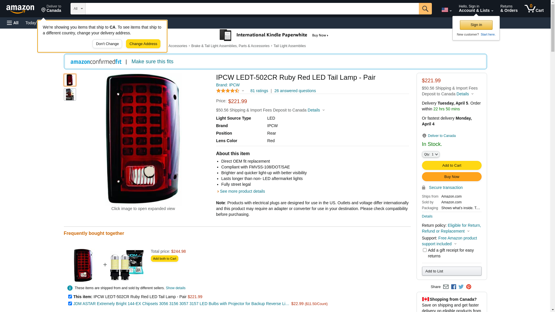 | JC Whitney | I11LEDT502CR | 1 | -2 | 1 | 1 @ $237.99 |