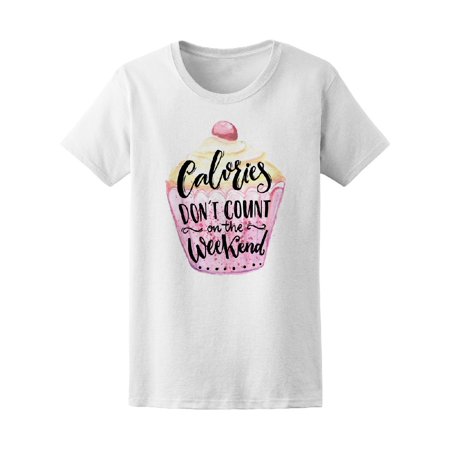 <ul> <li>Brand: Teeblox | Calories don't count on the weekend. Funny quote about weight loose at cupcake watercolor illustration. Modern calligraphy saying, joke inscription.</li> <li>White | 100% COTTON | T-shirt | </li> <li>Perfect for this spring season </li> </ul>