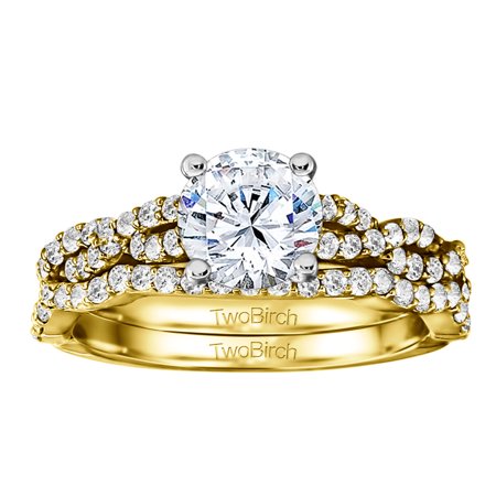 <ul> <li>Engagement Ring sets are made to fit together perfectly.</li> <li>The ring is set with 1.75 carats of Round stones Cubic Zirconia</li> <li>This ring is available in 10K Gold, 14k Gold and sterling Silver. Click TwoBirch above to see it in all of its variations.</li> </ul>