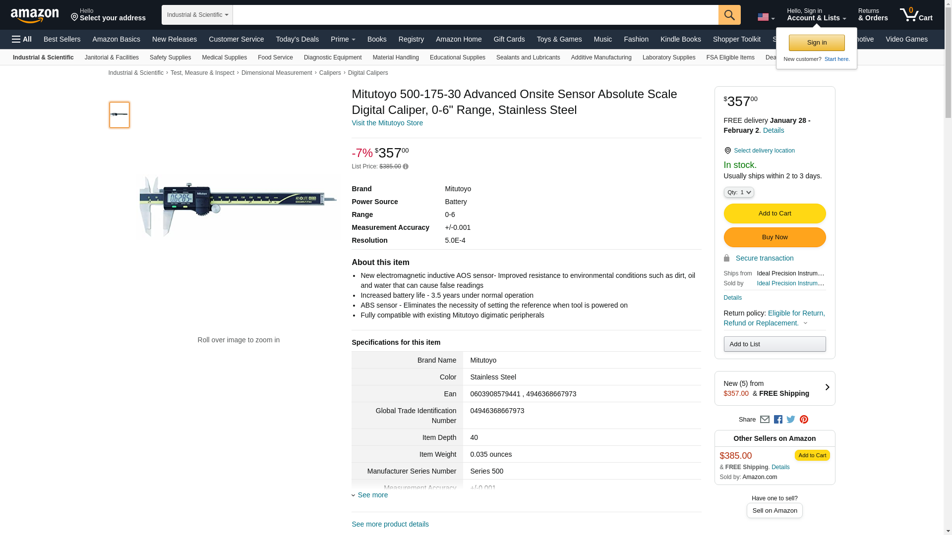 Mitutoyo 500-175-30 Advanced Onsite Sensor Absolute Scale Digital Caliper, 0-6" Range, Stainless Steel